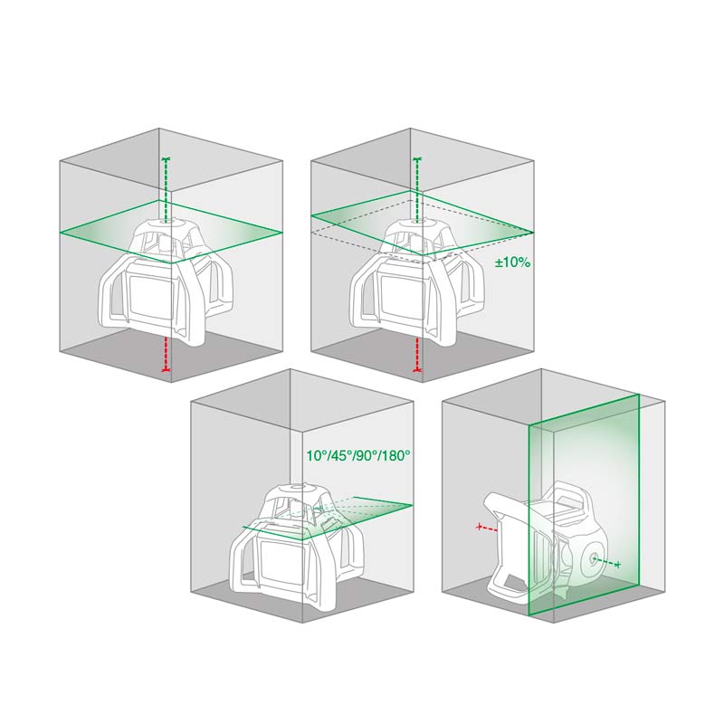 • Laser verde a doppia inclinazione digitale +/- 10%